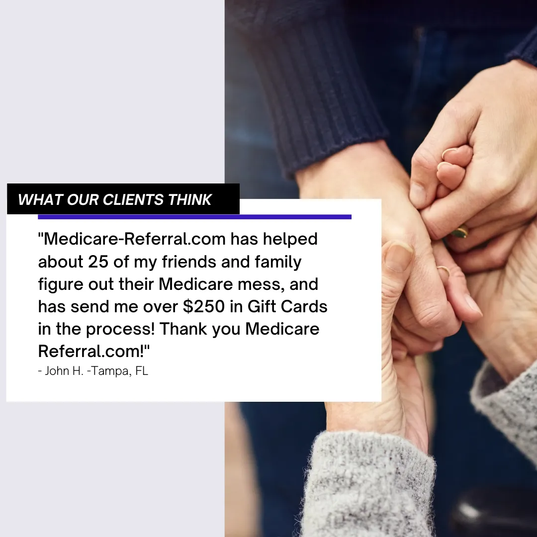 If you know someone that may need some help navigating their Medicare Supplement options, you can send them to us for a no-cost, no-obligation consultation and receive a gift card every time.